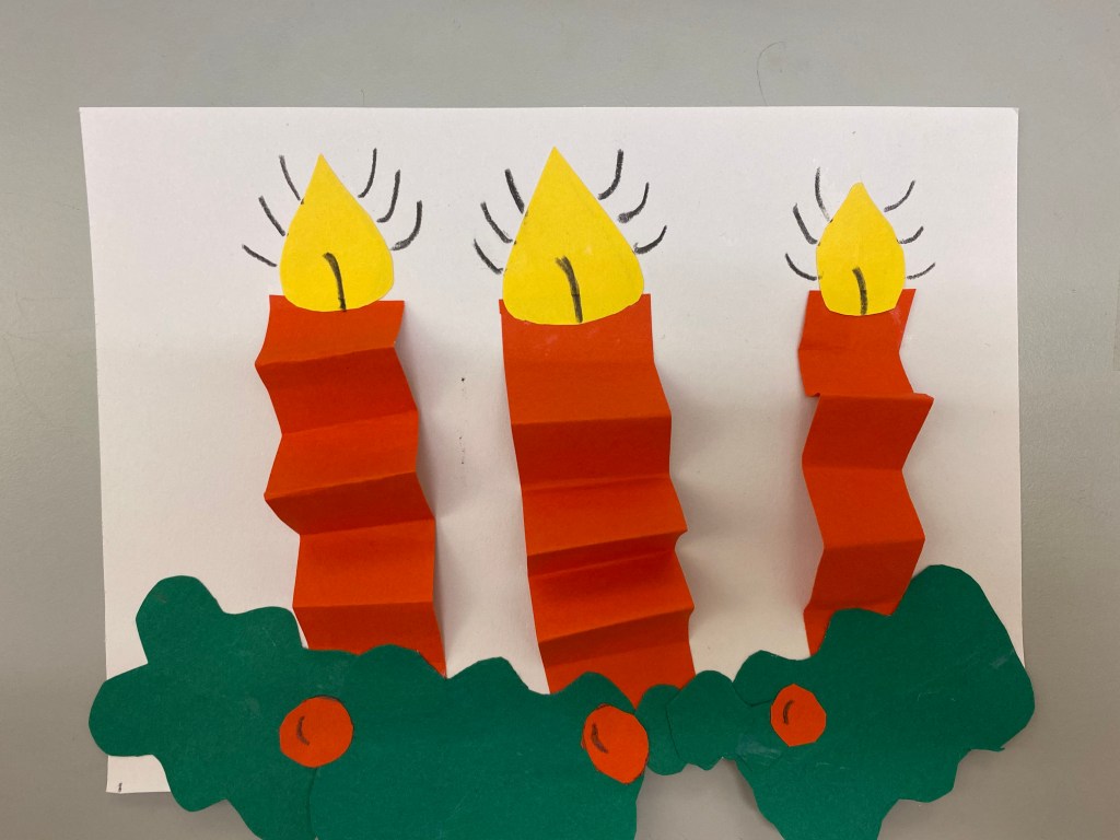 Julpyssel. Eleverna har fått göra dessa julkort med julljus på. Jag hade lagt ut uppgiften på Google Classroom och eleverna fick själva leta upp det inlägget och klicka på videon för att se hur de skulle göra. Just nu i ettan övar vi på sådana här enkla uppgifter på våra Ipads för att eleverna ska bli vana och lära sig hur man använder det.