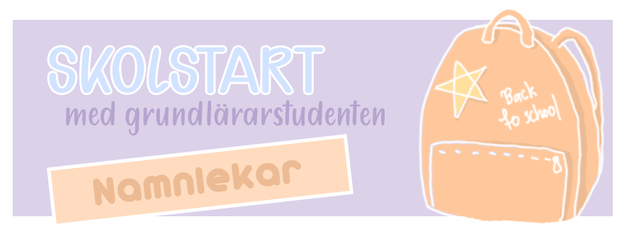 Hallå! Dags för skolstart igen, hoppas ni är lika taggade som jag. I år ska jag ’gå ner’ och ta förskoleklass igen. Från att ha lämnat mina 3or, så ska jag nu ha min andra förskoleklass. Det var fyra år sedan jag sist hade det, så det är lite pirrigt 😊 Jag välkomnar mina småttingar redan imorgon. Vad passar då bra? Jo namnlekar!