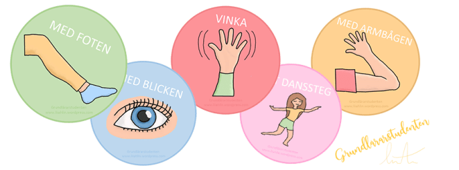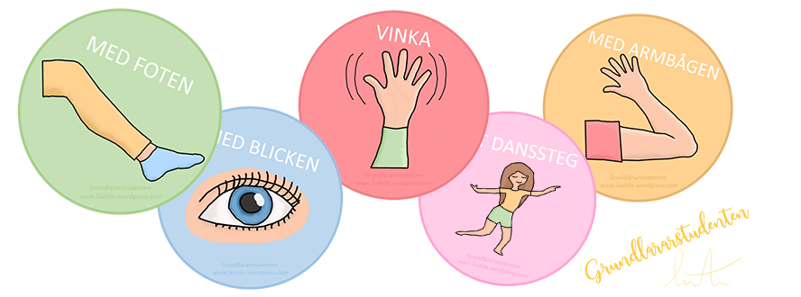 När eleverna kommer till skolan hälsar dem på mig vid klassrumsdörren. Jag har knappar som eleverna får trycka på och så hälsar vi på det sätt som eleverna föredrar. Mina hälsningknappar hittar du här. Jag tycker att detta är ett bra sätt att starta dagen då eleverna upplever att de blir sedda när de kommer, att de själva får välja något som känns positivt för dem och de får chans att prata om saker som nyligen har hänt.